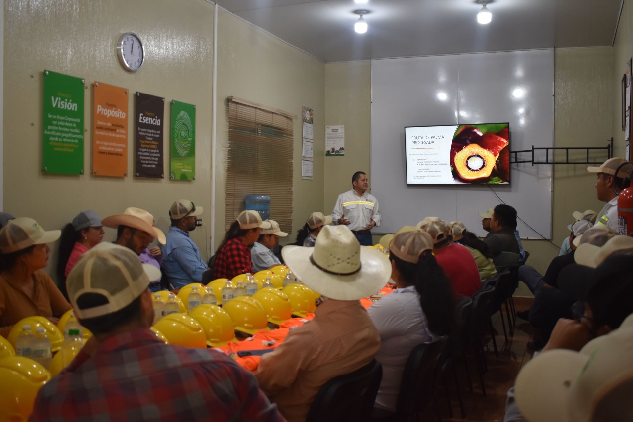 Recibimos la visita de 34 estudiantes de Agronomía de la Universidad Rafael Landívar en Finca Santa Rosa en Tiquisate, Escuintla. Durante el recorrido, los alumnos conocieron el funcionamiento de la planta extractora y visitaron nuestras plantaciones de palma, donde participaron en estaciones técnicas preparadas especialmente para su formación.
