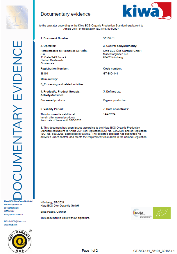 Tenemos un compromiso continuo por satisfacer las necesidades de nuestros clientes, en un mundo cambiante donde el consumo de productos orgánicos es cada vez más demandado. Por esto es un gusto compartirles que nuestra extractora REPSA 2, se convirtió en la primera compañía en Centroamérica en certificarse como extractora de aceite de palma orgánico, respaldada por Kiwa BCS, un organismo de control independiente que avala productos orgánicos. Esta certificación también incluye a Orgoleicos, S. A., la cual produce la materia prima orgánica y a Olmeca Zolic, por su almacenamiento y distribución.